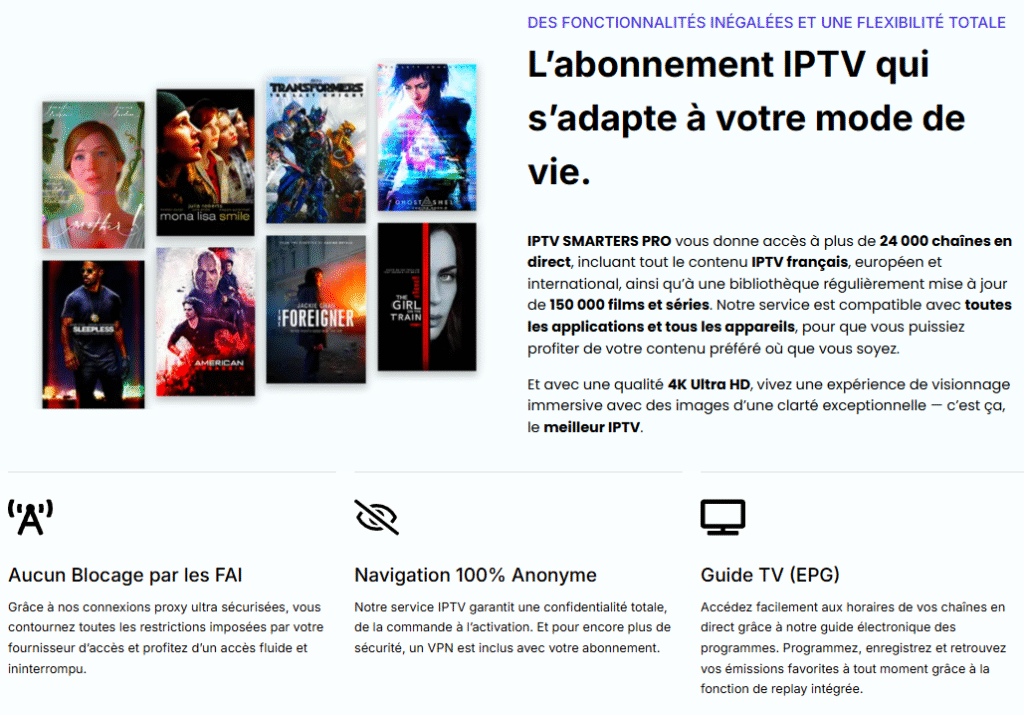 Avec IPTV Smarters, vous bénéficiez de :